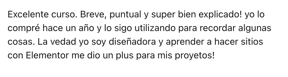 El curso no es de copywriting: nos centramos en diseño y maquetación de la landing.
